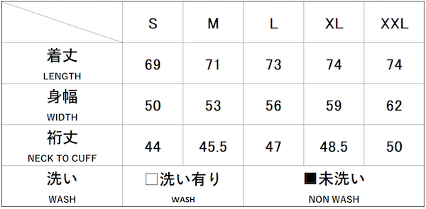天日干しにて着丈約2㎝、袖丈約0.5㎝程の縮みがございます。