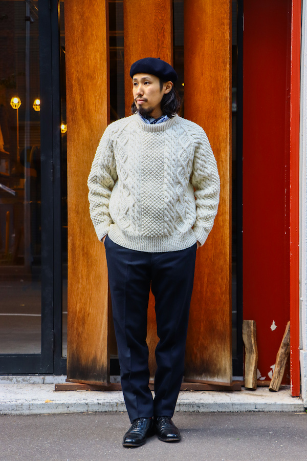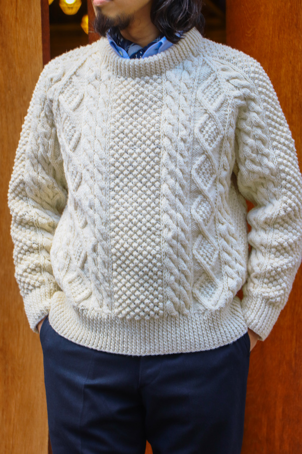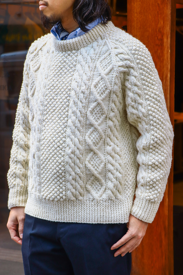 "Donegal Yarns (ドネガルヤーン)" 製のウールを使用。油分をたっぷりと含んだウールは、柔らかく保温性にも優れている。