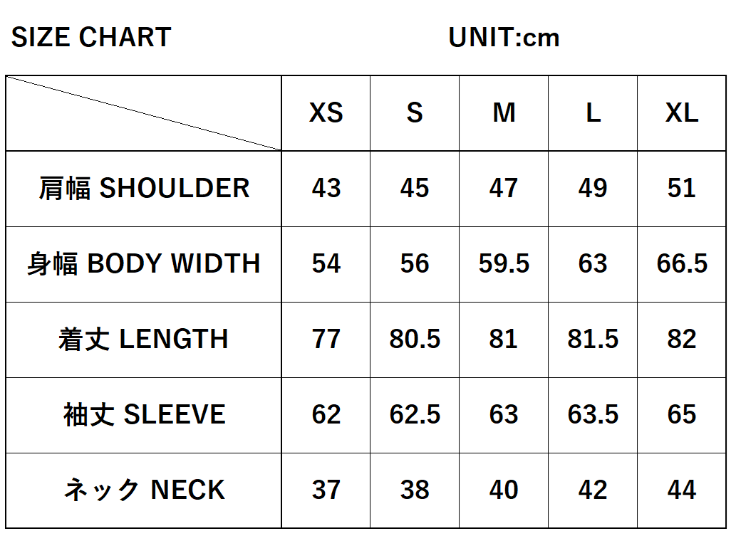 ※未洗い商品のため、洗濯後天日干しで着丈が1㎝~2㎝、袖丈が1㎝~1.5㎝程縮みます。
