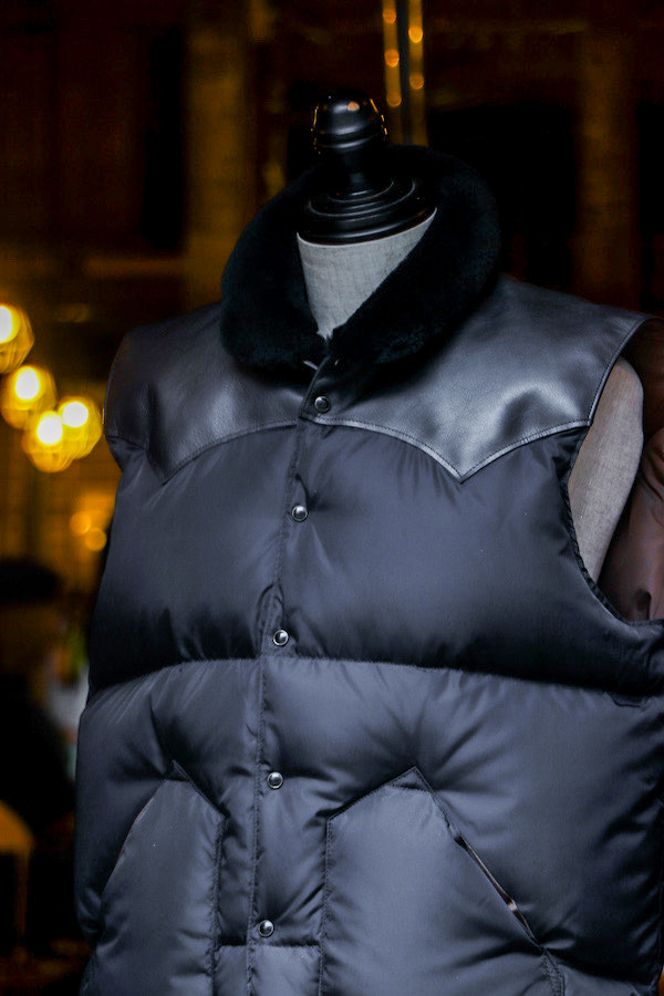 ピエール曰く”当時コロラド州デンバーで開催されていたウェスタンショー(ウエスタンにまつわるもモノ作りをしていたメーカーが集まる合同の展示会のようなイメージ)で継ぎ目のない一枚革のウェスタンヨークがあしらわれたダウンベストやゴアテックスのジャケットを見つけパリに持ち帰り販売していた。