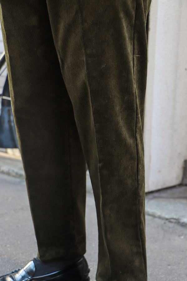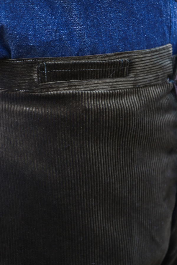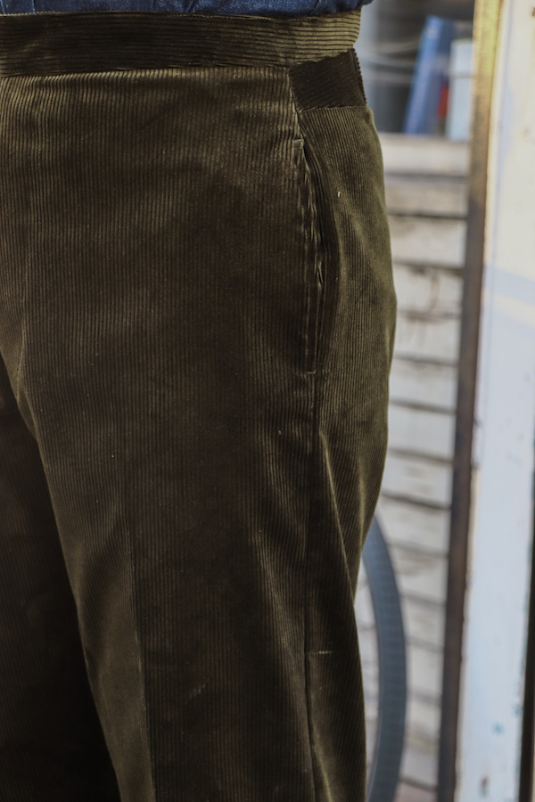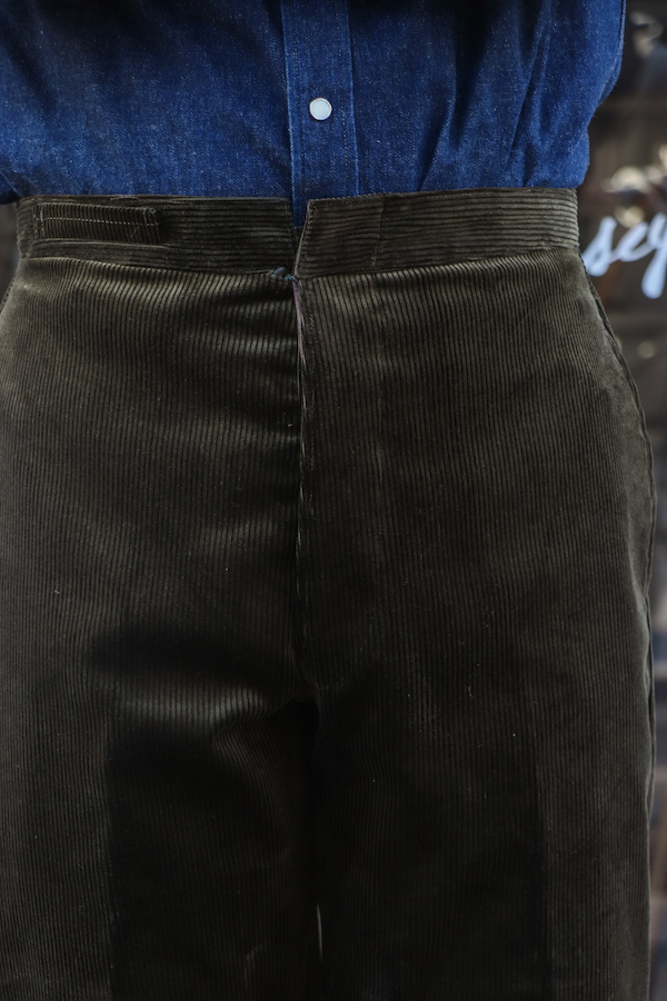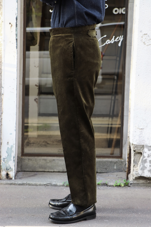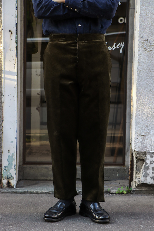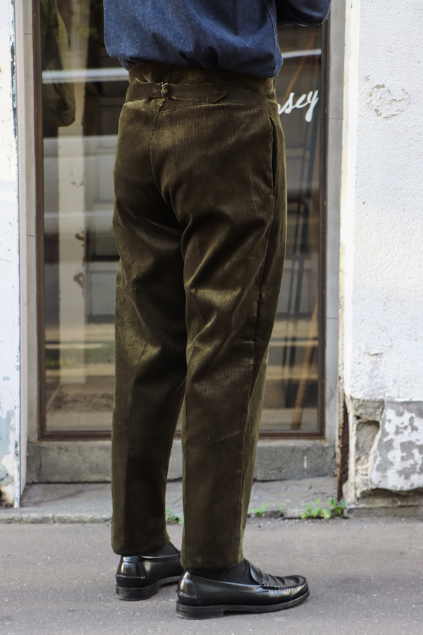 【ANATOMICA FRENCH GARMENTS / アナトミカ フランス製】モデル名からも分かるように、1915年にフレンチアーミーに支給されていたトラウザースがモチーフ。クラシックな針刺しのシンチバックが使用されている。ゆったりとしたフォルムでありながら、テーパードが効いており、履き心地・シルエットの美しさ共に満足できる1本。イギリス製の太畝コーデュロイ(コットン100%)生地を使用。
