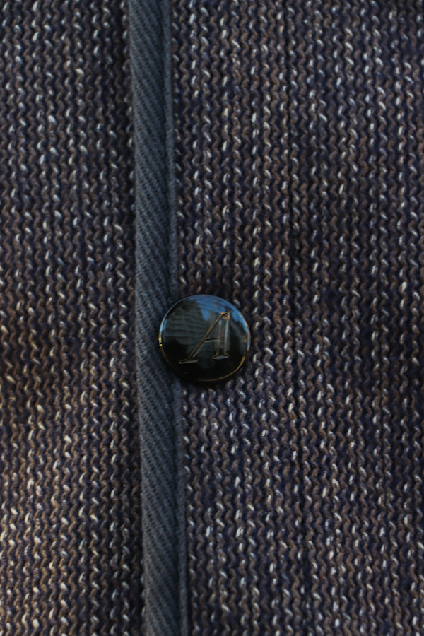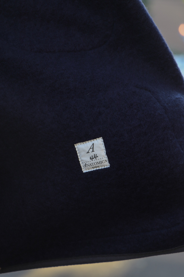 アナトミカのAの刻印が入るオリジナルのドットボタン。身頃裏にはBEACH CLOTHの素材ネームが入っています。