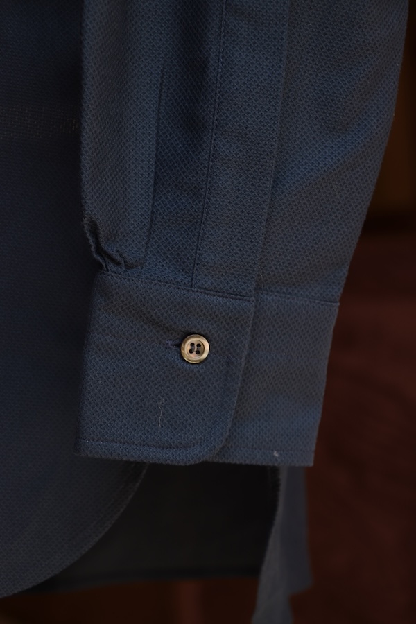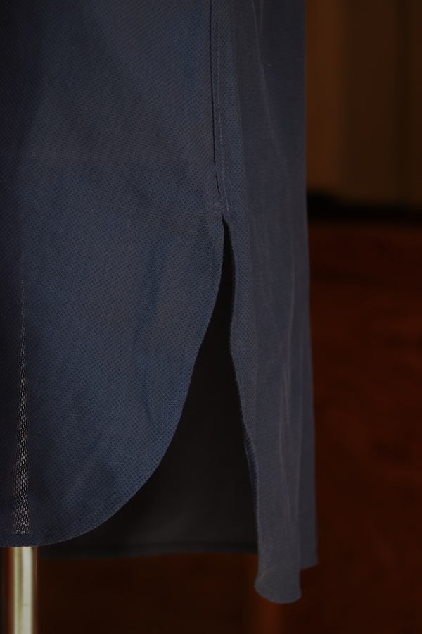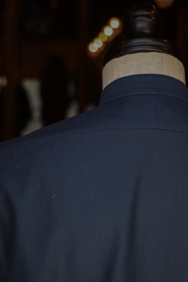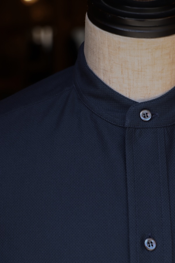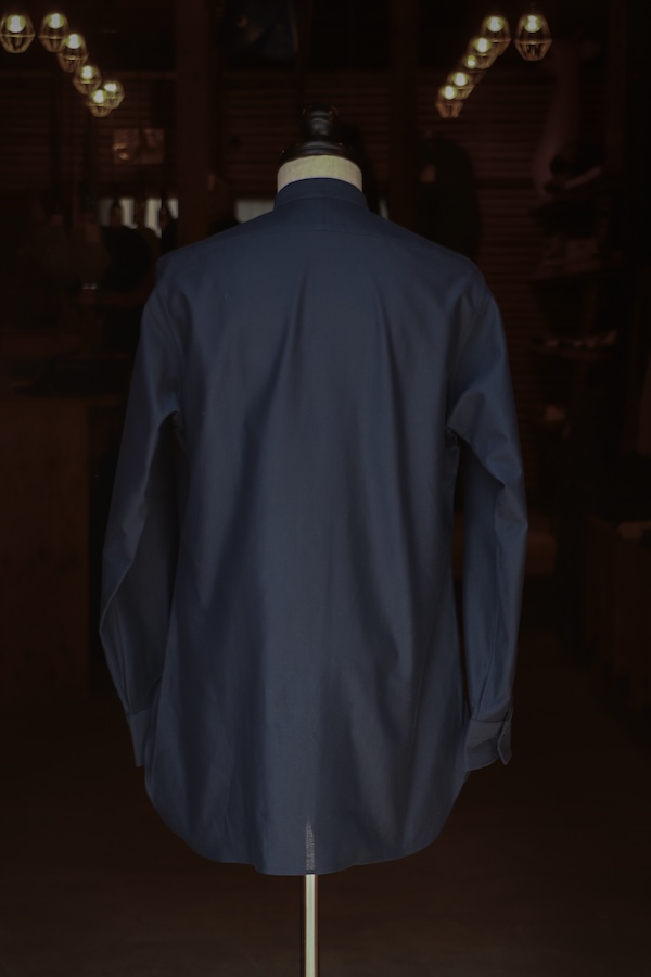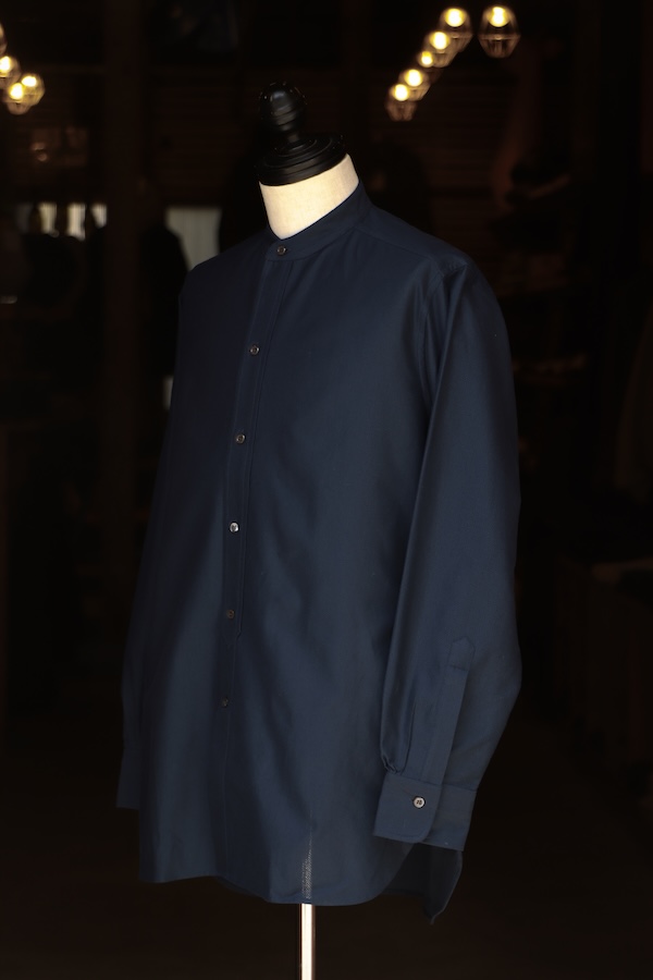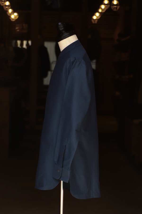 BAND COLLAR SHIRTよりもやや丸みのある襟、ウエストの適度なシェイプでタックイン時のバランスも非常に綺麗です。