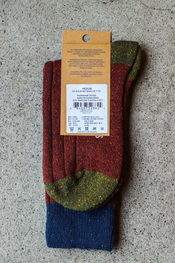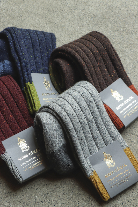 この工程により滑らかで柔らかで均一な仕上がりとなり、継ぎ目のゴロつきがなく足に吸い付くような履き心地に。こちらはヘビーゲージのウール混紡ソックスです。