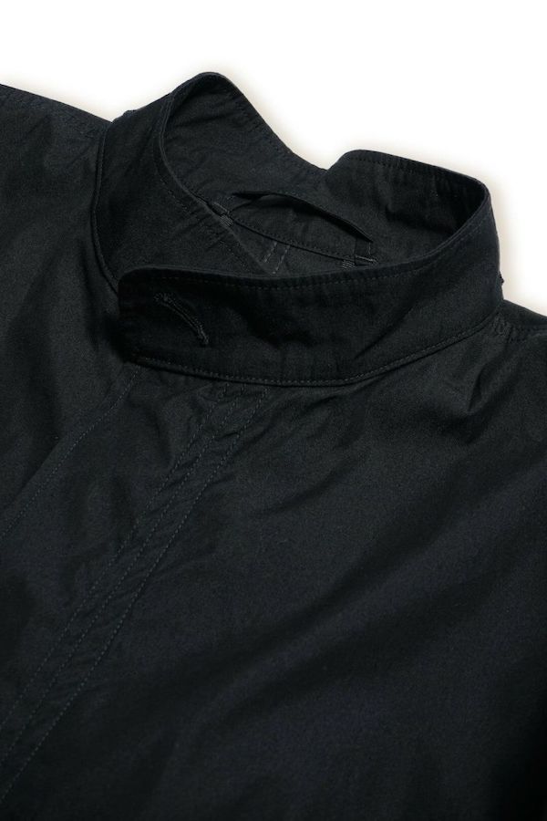 生地は、数年のテストを経て完全オリジナルで開発いたしました。ミルスペックと全く同じ「コットン80% / ナイロン20%」の混紡率でしか出せない絶妙なミリタリーカラーの色味を再現しています。通常用いられる「生地染め」ではなく、糸から染めた「先染め」糸を織り上げることで、着用を繰り返しても褪色しづらく、尚且つデッドストックのような生地のハリ感を実現。