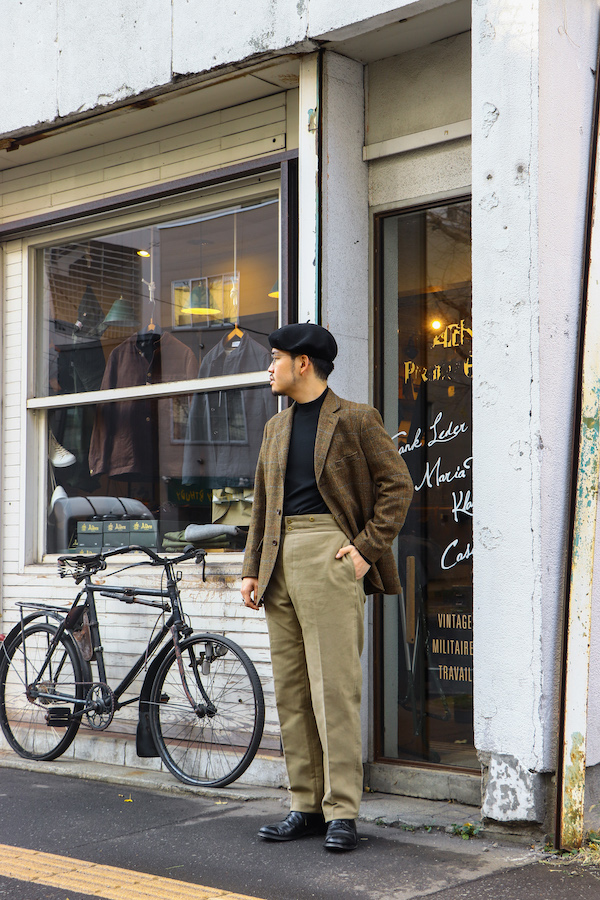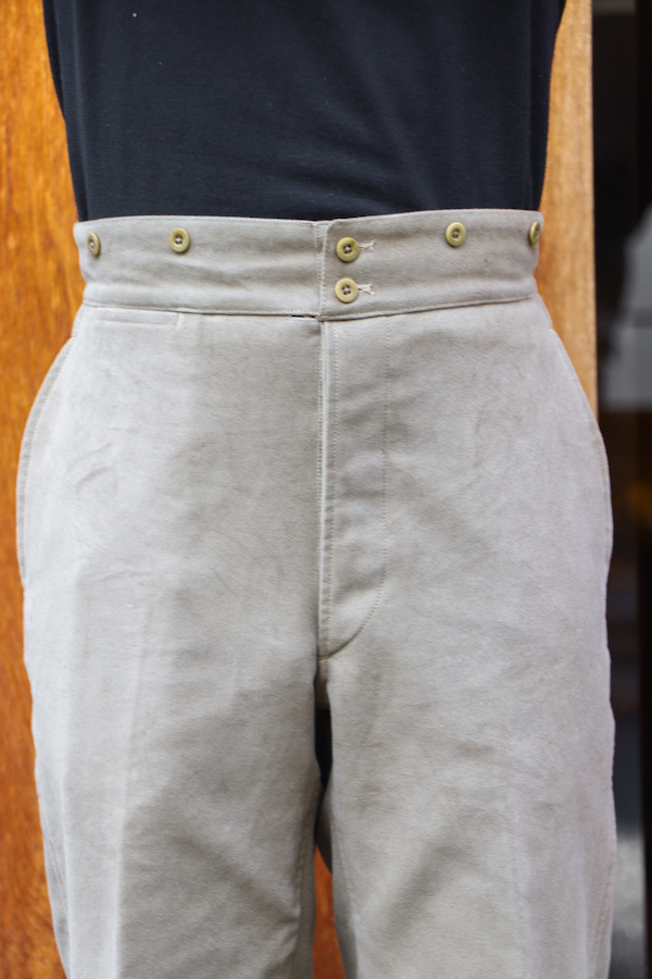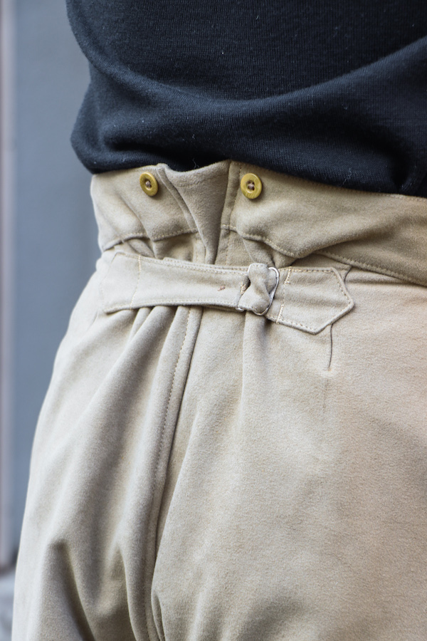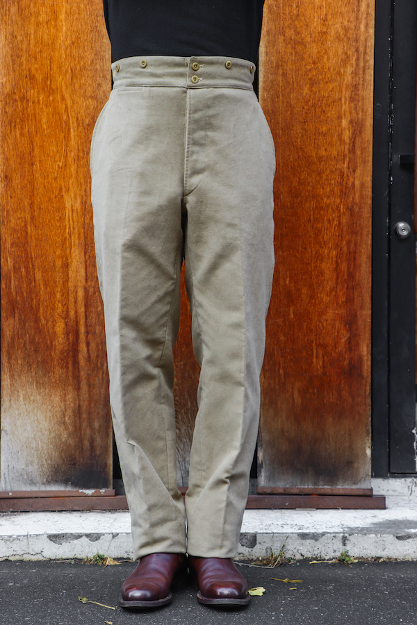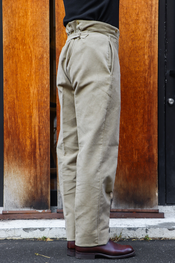 18世紀より存在するパリ郊外のブローニュの森近くバガテル公園でのガーデニング作業をするための"ワークパンツ。世界最古のデパートと言われる"BELLE JADENIER"製のものがモチーフとなっている。