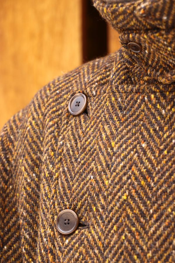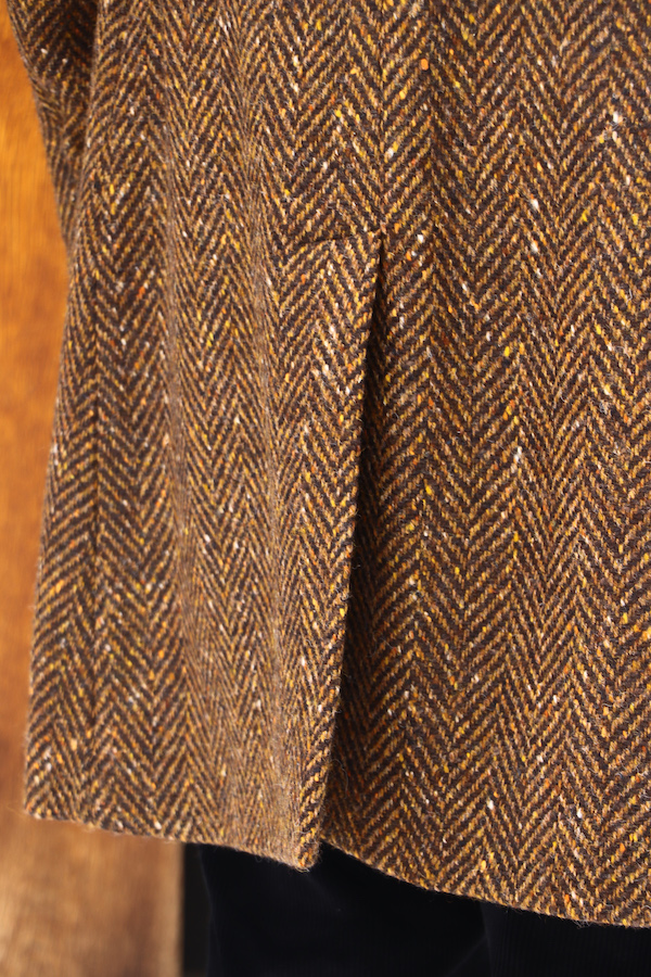 生地は英国の老舗メーカーによる大判のヘリンボーンツイード。カラーネップによるアクセントも効いています。