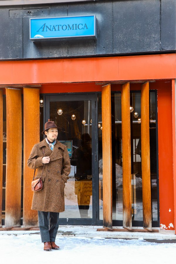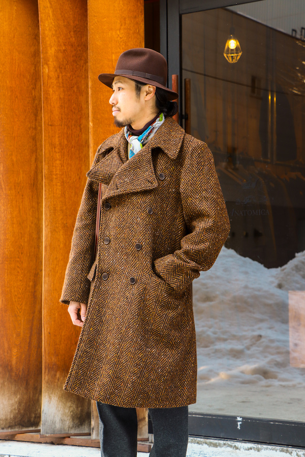 ANATOMICAのCD LONG COATベースにツイード生地で仕立てた”WINSTON”(ウィンストン)。