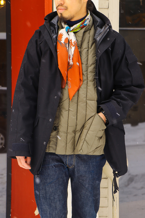 1980年代にアメリカ軍で採用された、通称”ECWCS”(エクワックス)のゴアテックスパーカをベースに、現代的な解釈で再構築した一着です。