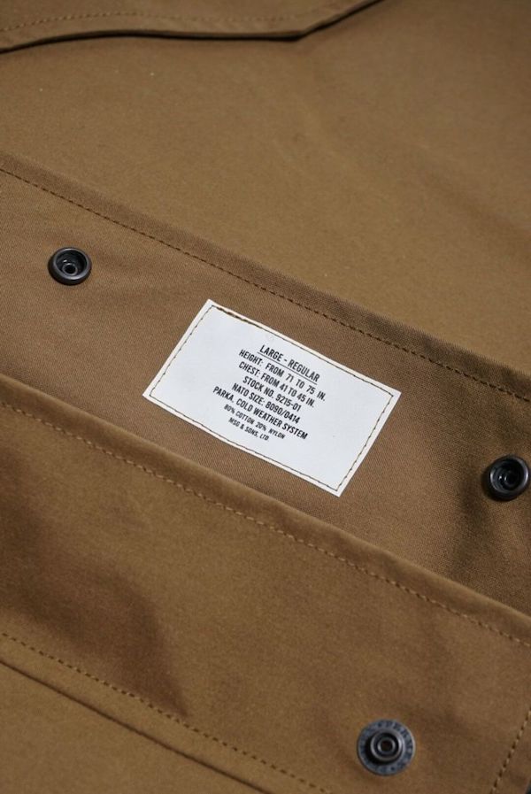 アメリカ軍のM1965 PARKAに使用されていた80/20クロスを数年のテストを経て完全オリジナルで開発。ミルスペックと全く同じ混紡率で再現しました。