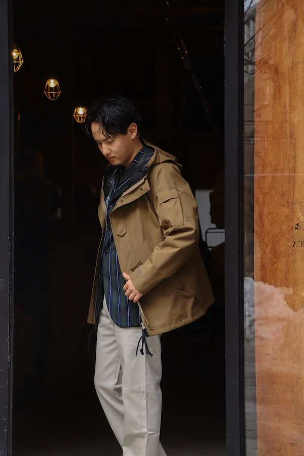 1980年代にアメリカ軍で採用された、通称”ECWCS”(エクワックス)のゴアテックスパーカをベースに、現代的な解釈で再構築した一着です。