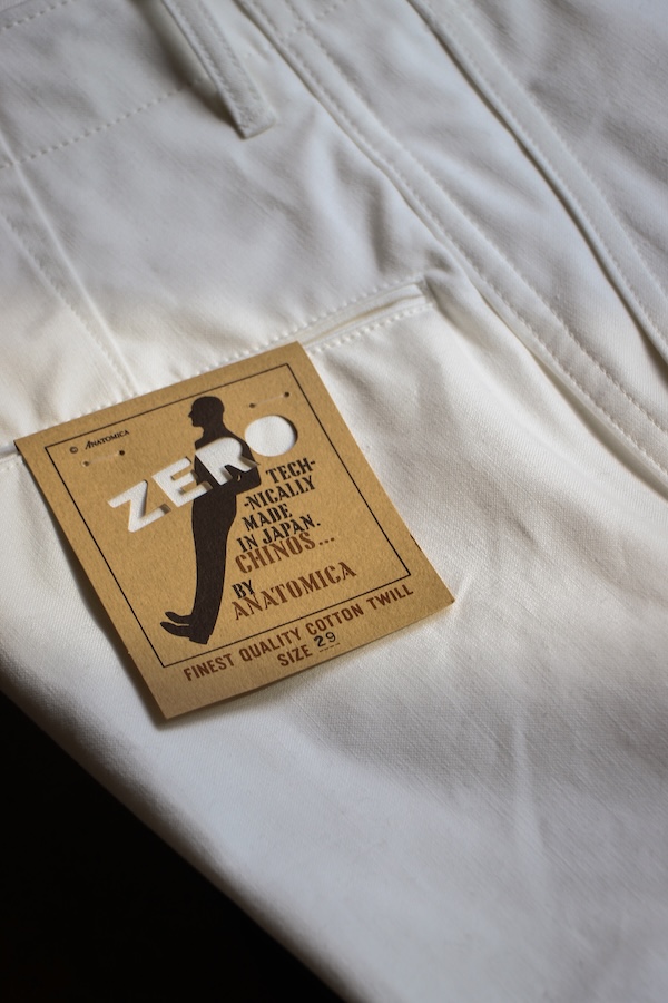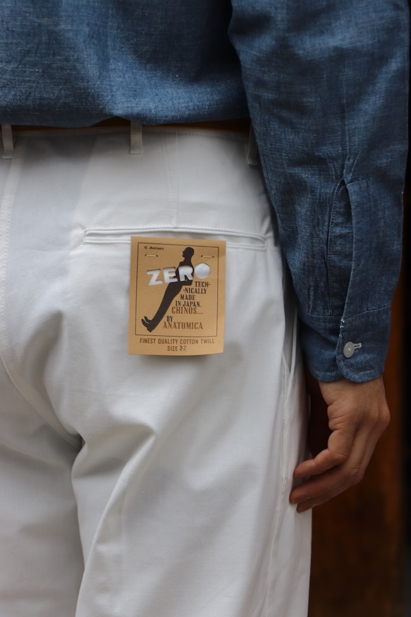 ANATOMICA定番アイテム‘‘CHINOⅡ‘‘に対して、股上はやや浅く、形はストレートシルエット。