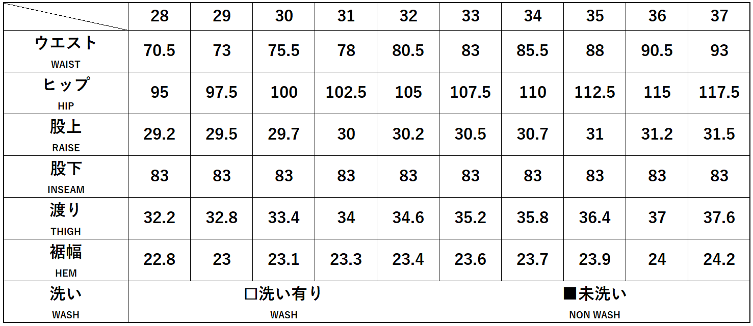 ※洗濯後、天日干しにて、ウエストが1~1.5cm、股下が1.5~2㎝縮みます。