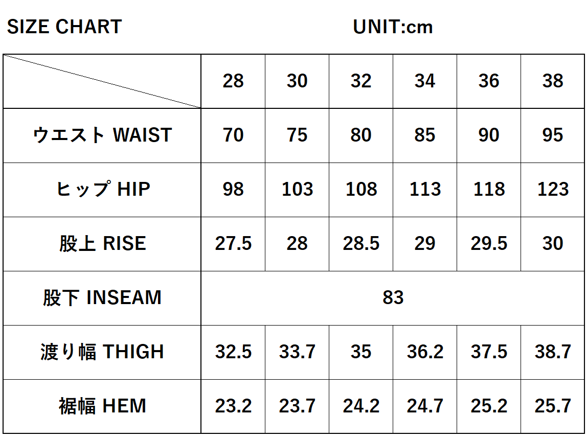※洗濯後天日干しで、ウエスト0.5cm~1cm、股下1.5~2.0cm程の縮みがあります。