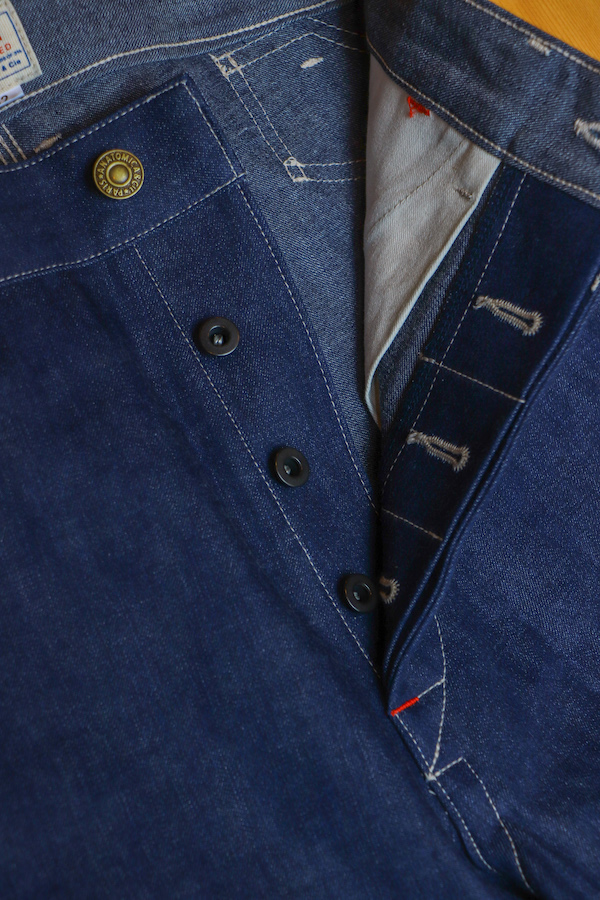 ヴィンテージを忠実に再現したシンチバックとフロントはボタンフライの仕様。10オンスと軽めなデニム生地を使用しているので、様々なシーズンで着用可能。