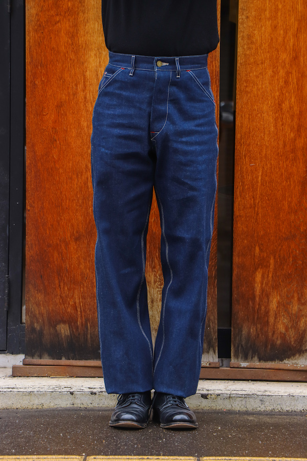 1930~1940年代のアメリカのヴィンテージワークパンツがデザインソース。オリジナルと同様、太いストレートシルエット。