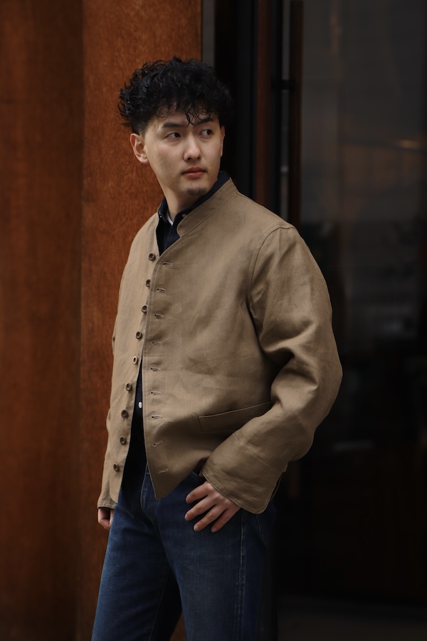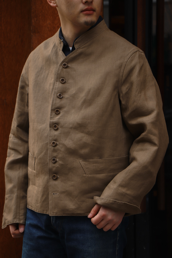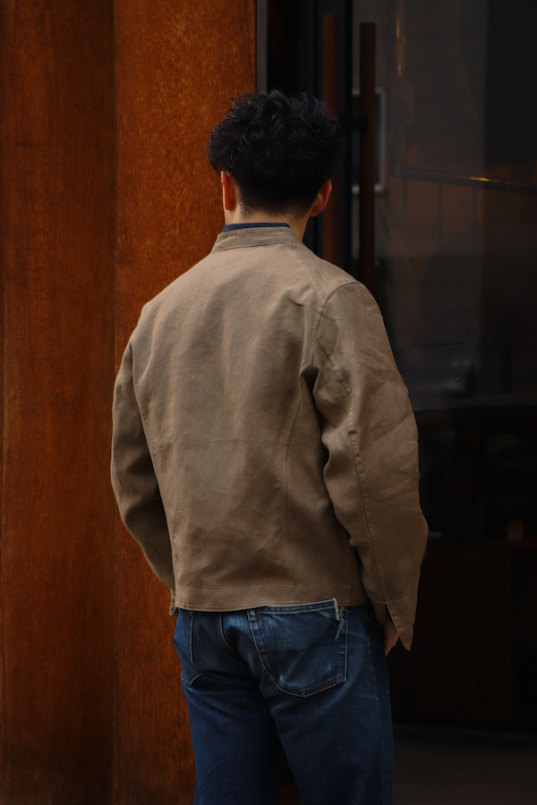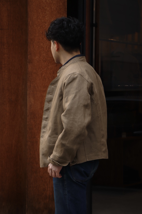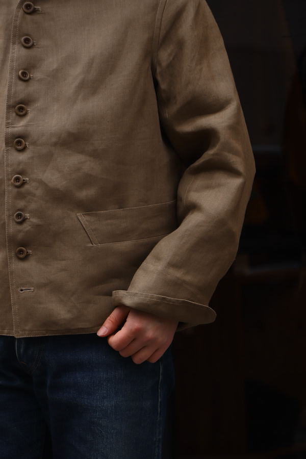モデル名となる"DOLMAN"(ドルマン)とは、ナポレオン三世時代の兵士の呼称に由来しており、当時のフランス軍のワークウェアがベースになっている。身幅の広さや、アームホールの太さは「用の美」を追求したANATOMICAらしい立体的なパターン。生地は、世界最高峰と言われるアイルランド産の艶やかなリネン100%を使用。