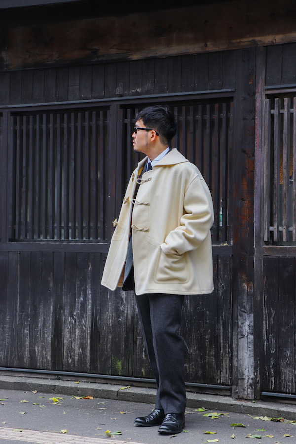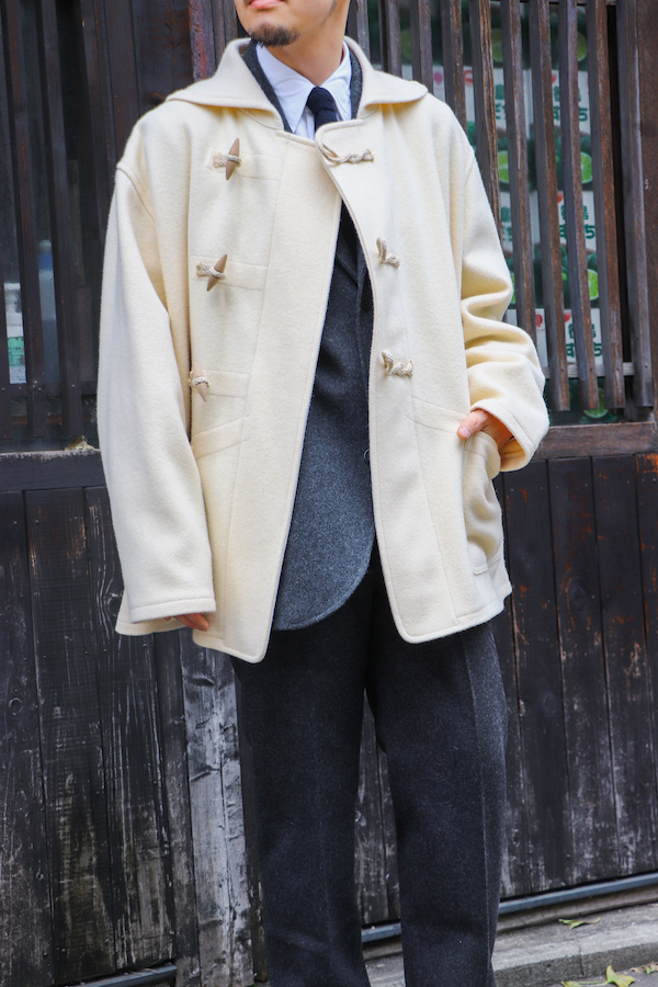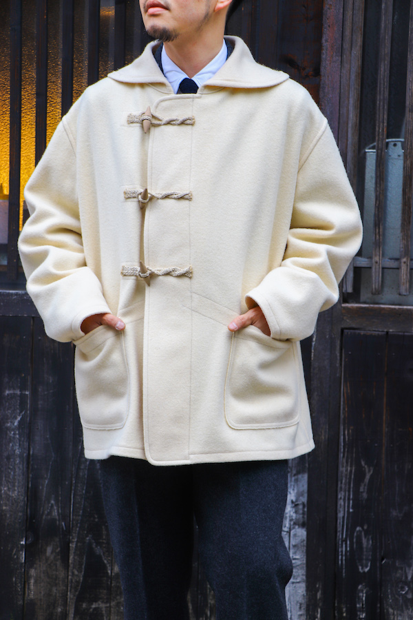 ANATOMICA(アナトミカ) 1940年代のイギリス軍にフォーカスを当てたDYNAMO(ダイナモ)シリーズ。「DYNAMO(ダイナモ)」とは、第二次世界大戦のダンケルクの戦いにおいて遂行さえた作戦名が由来。40年代の英国海軍のダッフルコートをANATOMICAらしく制作した1着。しっかり肉厚なメルトンウール100%で作成。