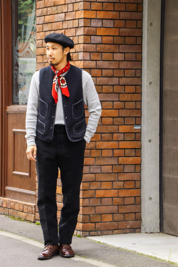 1900年代にアメリカで誕生した「ビーチクロス」をアナトミカオリジナルファブリックで再現した1着。当時寒冷地で働く労働者などが着用していたと言われています。ラッセル編みと呼ばれる織り方で、保温性に優れています。ビンテージとは異なりウエストにシェイプの効いたエレガントなシルエット。ウールとコットンの混紡生地を使用。(WOOL 65%, COTTON 35%)