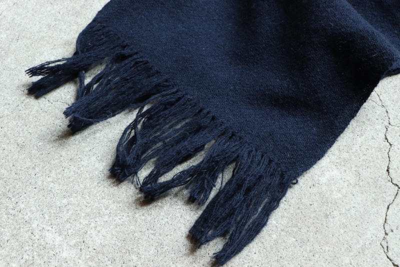 シェットランド諸島に生息する羊から取れる100%純粋なシェットランドウールを使った、日本国内のとある地で織られたホームスパンのスカーフ。ホームスパンとは、HOME (家) SPUN (紡いだ) という言葉どおり、原毛から手染め、手紡ぎ、手織りによって仕上げるイギリス発祥の毛織物のこと。現代では非常にアナログな方法ではありますが、機械では決して表現出来ない雰囲気は手作業の温もりを感じます。