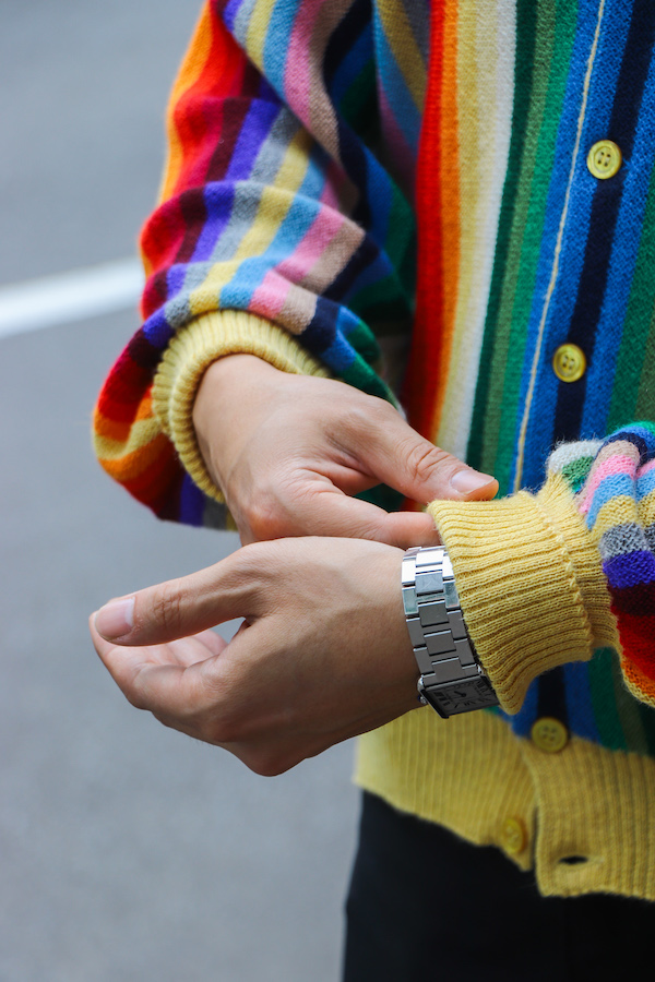"FANNI LEMMERMAYER"(ファニ レママイヤー)社は1877年に設立されたアルパカ100%の糸を使用したリンクスアンドリンクス(パール編)製品専門のメーカー。アルパカの成長過程でたった1度しか取れない貴重な毛を用い、発色よく鮮やかな独自の糸に仕上げている。ピエールが"HEMESPHERE"以来40年ぶりにオーダーをし、ANATOMICAらしい色・モデルを厳選。2PLYの肉厚のカーディガン。クラシックなベルスリーブ。