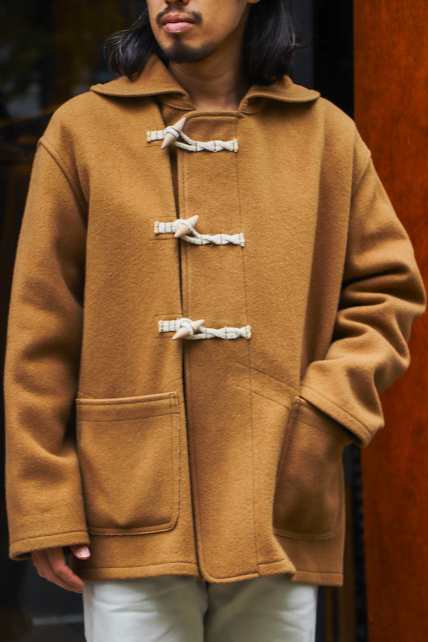ANATOMICA(アナトミカ) 1940年代のイギリス軍にフォーカスを当てたDYNAMO(ダイナモ)シリーズ。「DYNAMO(ダイナモ)」とは、第二次世界大戦のダンケルクの戦いにおいて遂行さえた作戦名が由来。40年代の英国海軍のダッフルコートをANATOMICAらしく制作した1着。しっかり肉厚なメルトンウール100%で作成。