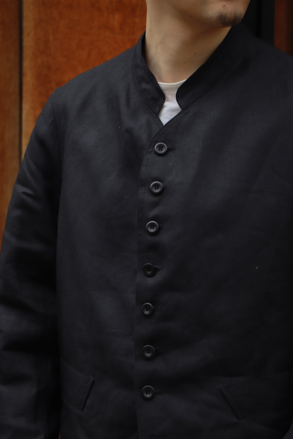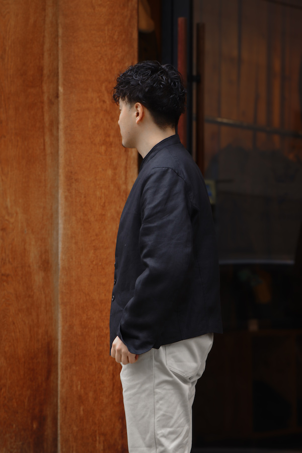 モデル名となる"DOLMAN"(ドルマン)とは、ナポレオン三世時代の兵士の呼称に由来しており、当時のフランス軍のワークウェアがベースになっている。身幅の広さや、アームホールの太さは「用の美」を追求したANATOMICAらしい立体的なパターン。生地は、世界最高峰と言われるアイルランド産の艶やかなリネン100%を使用。